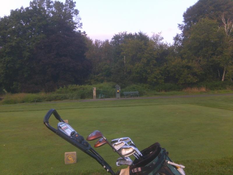 The best part of the day was clearly the weather. I did, in the middle of some flubs, wonder why I played. I realized that I keep coming out here, shooting 100, and that I'm not feeling what I hope I'm going to be feeling when I leave for the links. So why?
